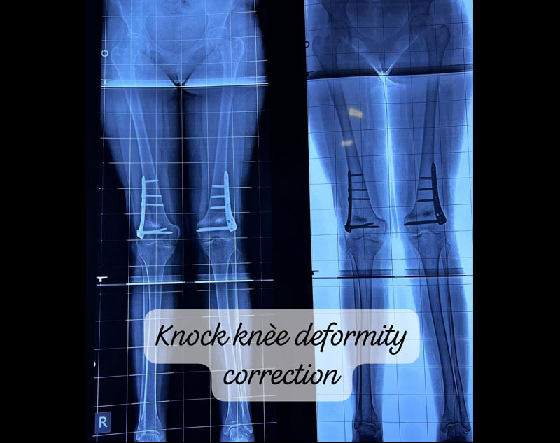 Deformity correction for conditions like knock knees (genu valgum) and bow knees (genu varum) involves surgical and non-surgical treatments aimed at realigning the legs to a more normal, functional position. These conditions can affect walking, cause pain, and lead to long-term joint problems if left untreated.