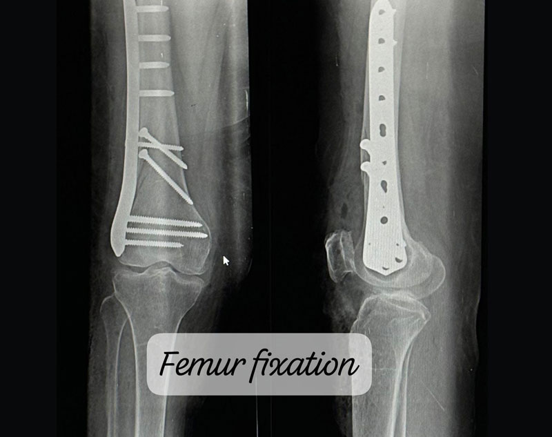 Treatment for complex trauma requires a multidisciplinary approach, including surgical intervention, internal/external fixation, and sometimes reconstruction of damaged tissues.