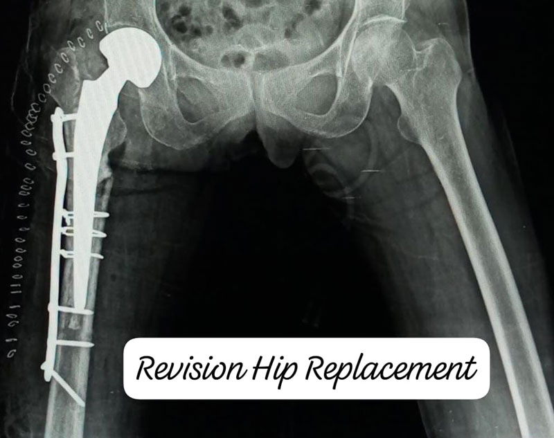 Revision hip replacement is a more complex surgery performed to replace or repair a hip prosthesis that has failed or worn out over time. It is necessary when the initial hip replacement no longer functions properly due to wear, infection, loosening, or other complications.
